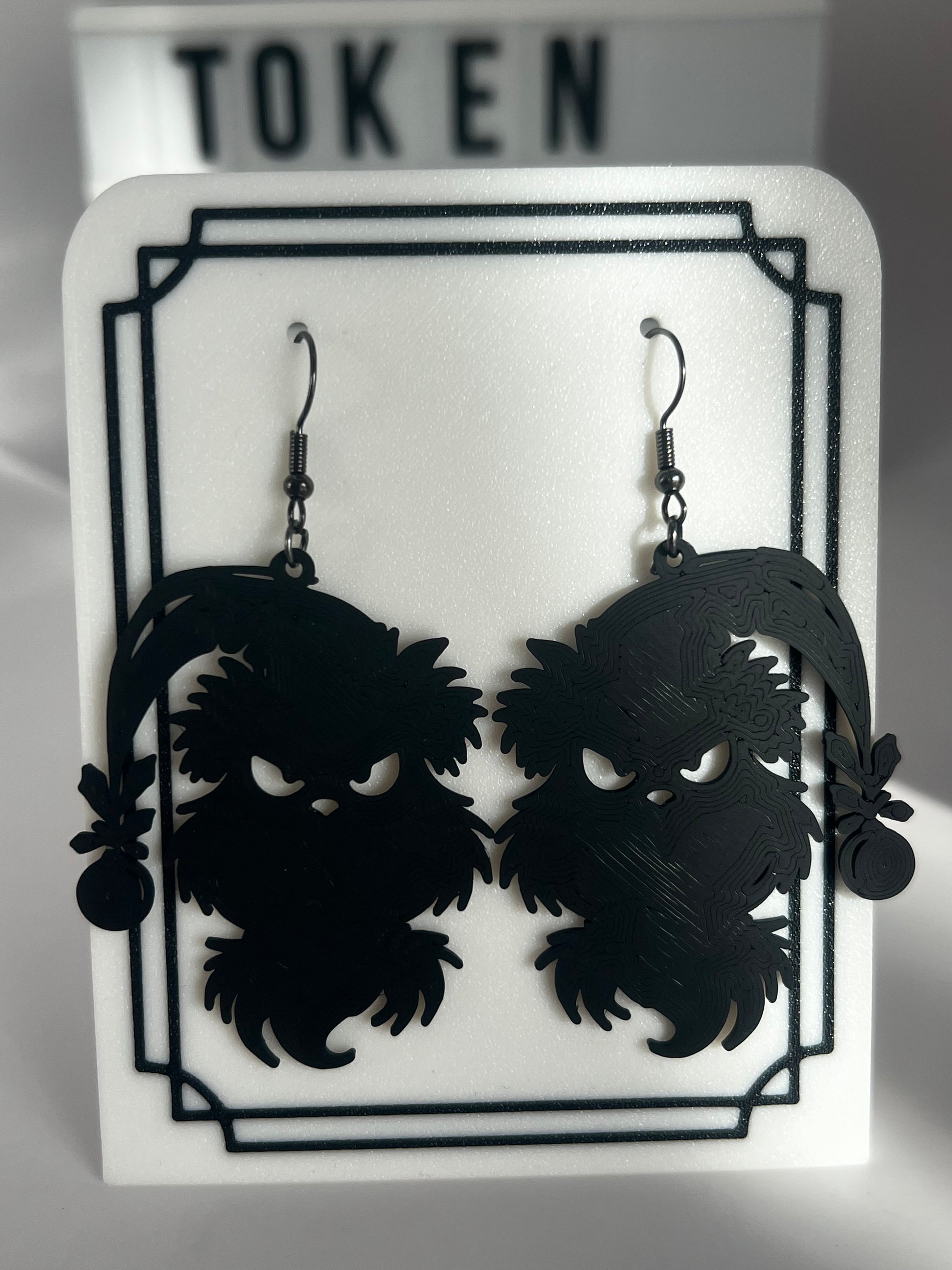 Add some holiday attitude with these 3D-printed Grumpy Grinch dangle earrings. This design features a slightly different Grinch style, offering the same festive fun but with its own quirky twist.