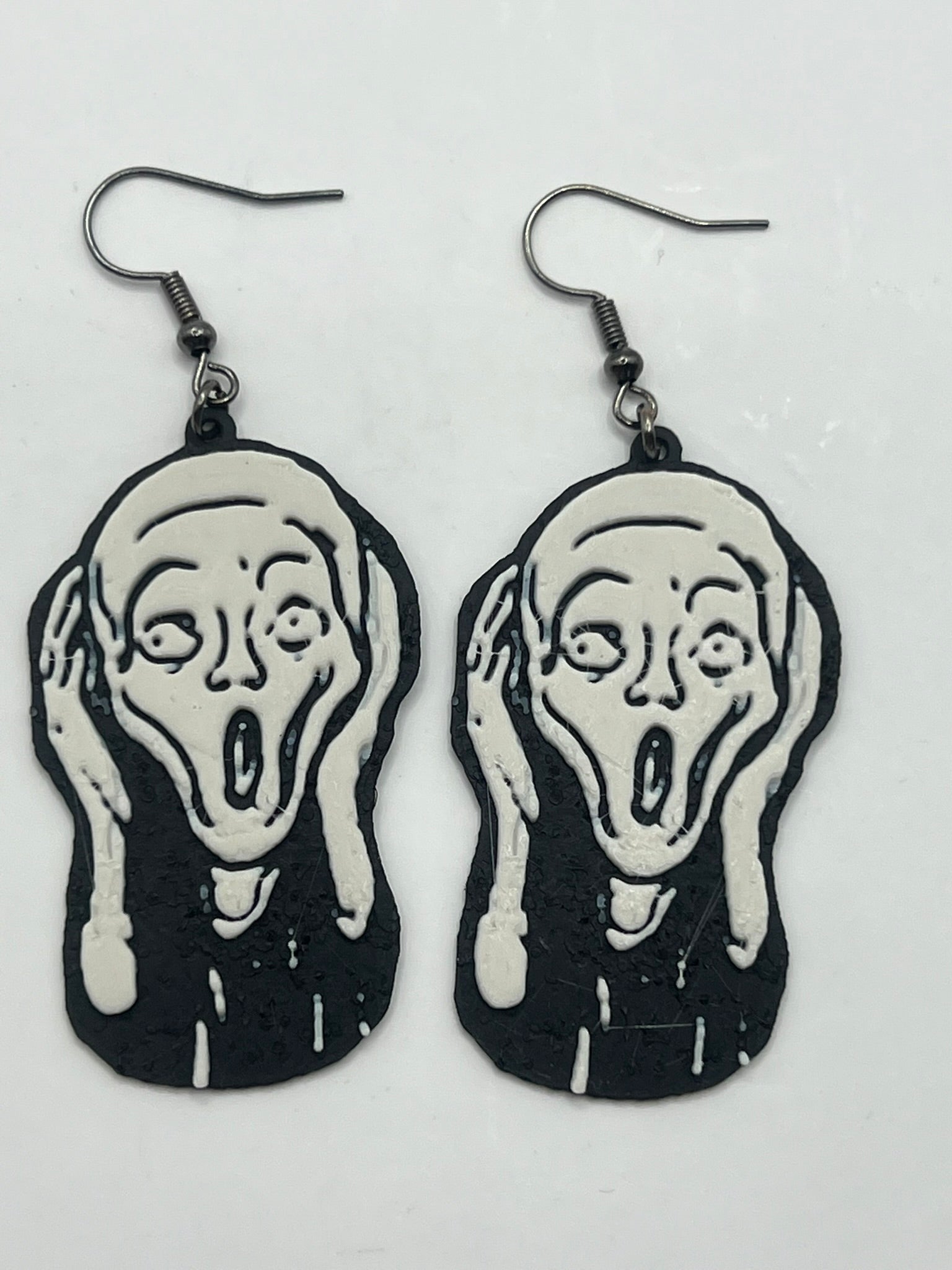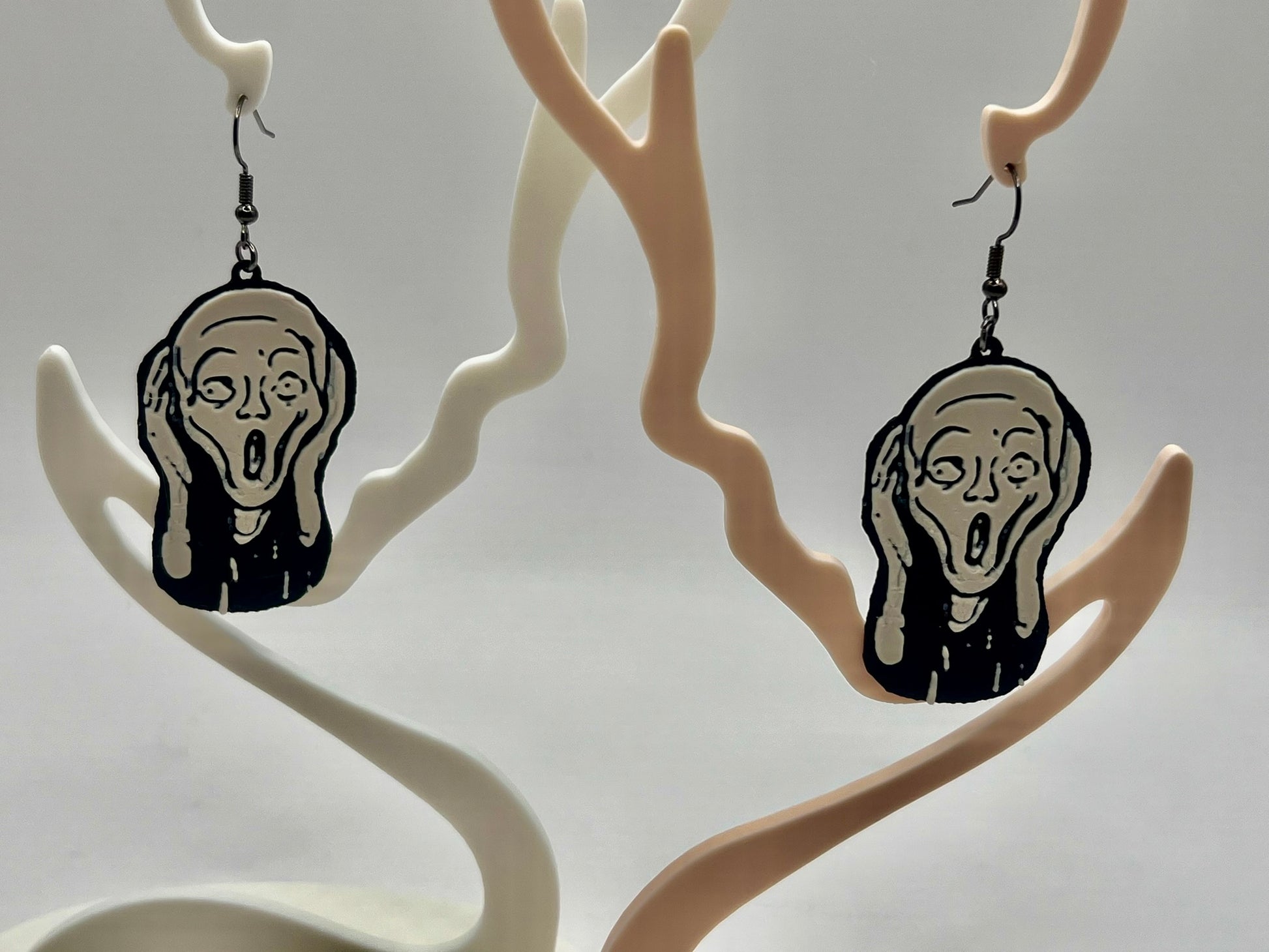 Make a bold artistic statement with these 3D-printed “The Scream” earrings. Inspired by the famous painting, the sculptural design captures drama and emotion in miniature form.